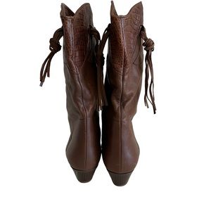 Salamander Brown Leather Western Style Boots with Fringe Detail