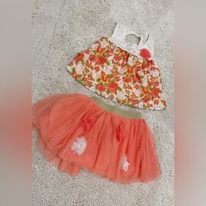 *3/$30* Little Lass | Toddler Girl Two Piece Coral & White Floral Skirt Set