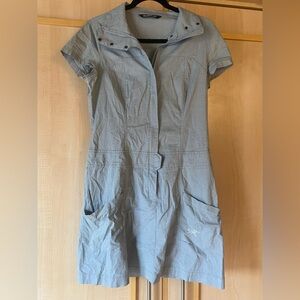 With clean lines, comfortable cotton fabric and a unique collar that provides style flexibility, the Blasa Dress is designed for more than just everyday.Made from Fi, a lightweight cotton chambray with a touch of stretch, the dress stays comfortable as temperatures rise.The tall, zip front collar can be opened for a classic look, or zipped up to create a more urban silhouette.Two side pockets hold small essentials without impacting the Blasa´s lines.