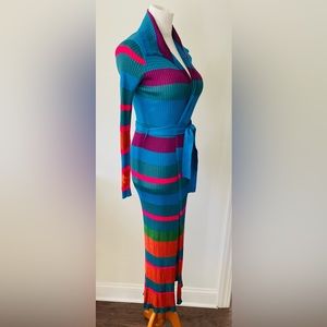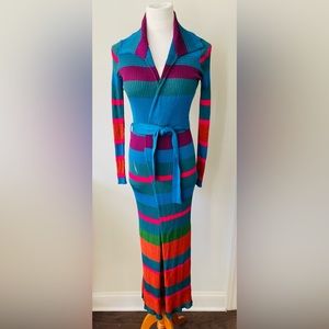 ETRO NWOT KNIT MULTICOLOR MAXI BELTED CARDI-COAT SWEATER SIZE 38