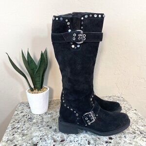 SAM EDELMAN BLACK SUEDE STUDDED TALL BOOTS