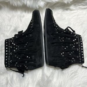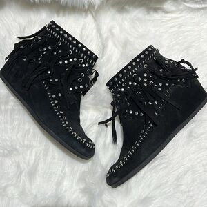 ASH Spirit Studded Suede Fringe Ankle Boots Size 39/8-8.5. B66