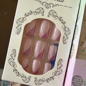 Press on Nails 3 sets -Palm Tree Nail Set - Pink and Green and pink geometric