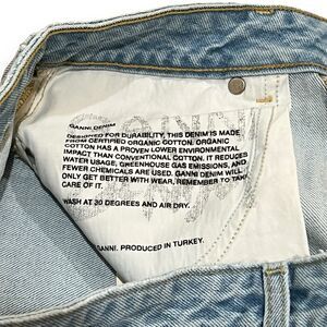 GANNI Misy Cropped Relaxed Straight High Rise Jeans Size 28 Light Blue Stone.