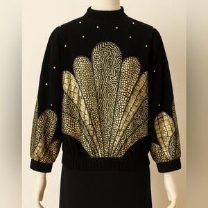 Julian K. Vintage Black & Gold Woman’s Leather Bomber Jacket M Art Deco Style
