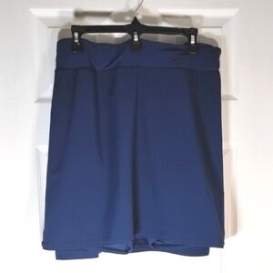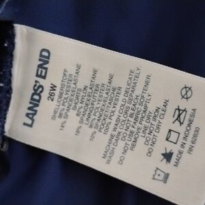 Women's Size 26W, navy blue swimsuit skort from Lands' End. polyester Spandex skirt, nylon Spandex shorts and polyester liner. side seam pockets, 19-1/2" back length from waist to hem and 46" waist. no flaws. pool beach pond river vacation cruise boating camping sunning tanning sports tubing camping