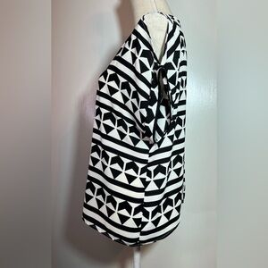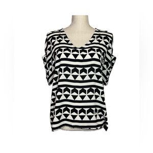 Lush Black and White Geometric Blouse Women’s Size Small Short Sleeve