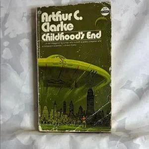 Classic science fiction novel by Arthur C. Clarke. Features a green and black cover with a cityscape and spaceship.