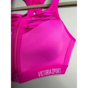 Ignite your workout with this vibrant Victoria Sport sports bra. Feel the confidence surge as the supportive design and dynamic strappy back enhance your every move. The bold pink hue and sleek front zipper create a look that's as powerful as you are, while the breathable fabric keeps you cool and comfortable through intense training sessions. Perfect for high-impact activities like running, HIIT, or cycling.