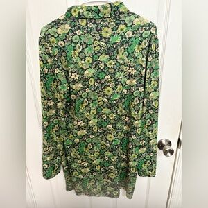 Zara Green Floral Print Long Sleeve Button Down Tunic Dress