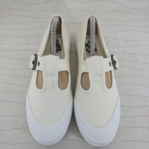 Vans Womens Style 93 Mary Jane Beige Linen Canvas Buckle Shoes Chunky Size 8.5