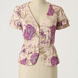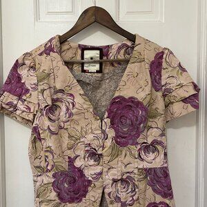 Anthropologie x Elevenses Cotton Purple Floral Blouse