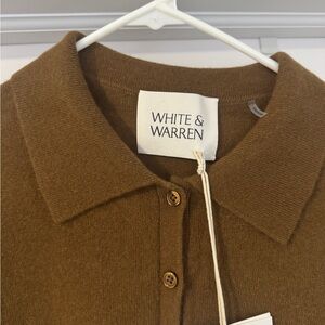 Elegant brown sweater by White + Warren. Features a button-up front and classic collar.