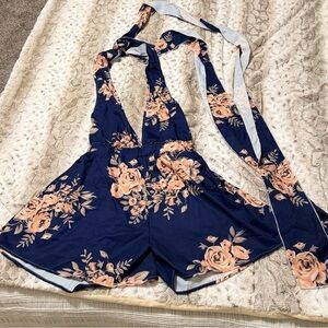 NWOT Elegant Floral Navy Tie Jumpsuit Size L