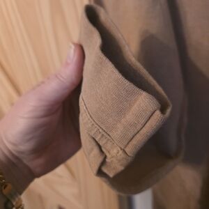 Elevate your casual wardrobe with this stylish camel colored polo shirt. Sueded fabric makes it a great addition for these colder days. Excellent used condition.