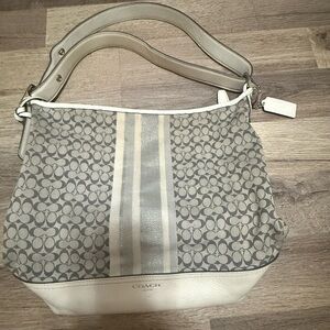 Coach Gray and Cream Patterned Shoulder Bag