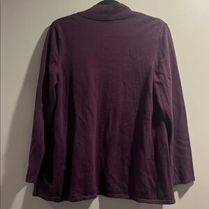 Chico's cardigan in deep purple. Open front design. Soft and comfortable. Ideal for layering.