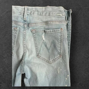 MOTHER The Looker Sacred Slit Ankle Jean in Nice Shot Paint splatter Frayed 24