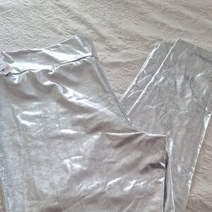 NWT These shimmering liguid silver leggings are perfect for adding a touch of shine sparkle to your wardrobe. Comfortable and stylish, layer with sequin T or tunic. Wear to bring the bling add a retro effect or Fancy dress.