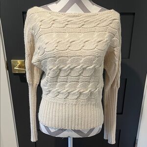Catherine Malandrino Baby Alpaca Wool Off the Shoulder Cable Knit Sweater