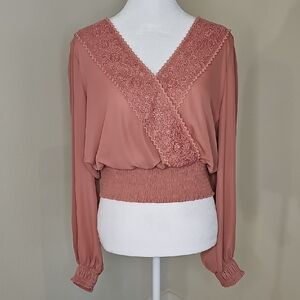 Joie Mauve Pink Dusty Rose Lace Long Sleeve Blouse Top Sz M