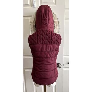 AEROPOSTALE Women's Y2K-Style Red Cable Knit Fur Trimmed Hood Puffer Vest Sz S