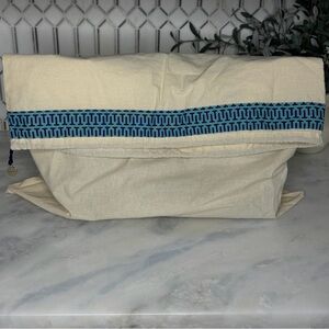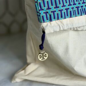This bag has never been used and still has the original protective plastic on the hardware, zippers, and interior pockets. Includes original Tory Burch dust bag.
