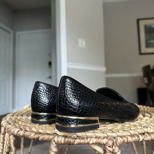 Aquatalia Women’s Loafer Perci Gold Black Crocodile Embossed Leather Size 5 $350