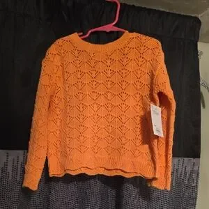 Bright orange knit sweater with a stylish pattern. Ideal for casual wear. A44-783