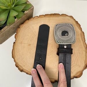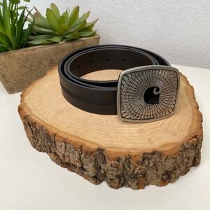 Carhartt Women's Black Leather Belt Square Silver Buckle Size L