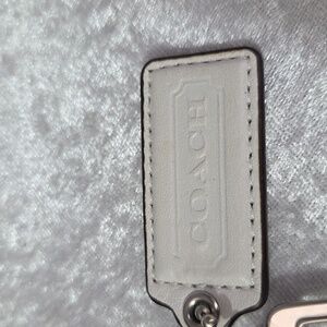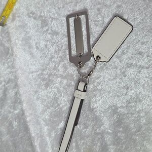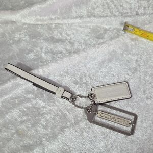 Chic white leather keychain by Coach. Includes two stylish tags with embossed logo.