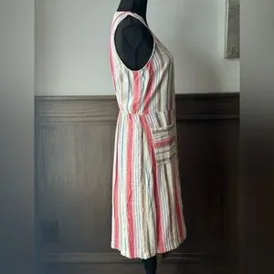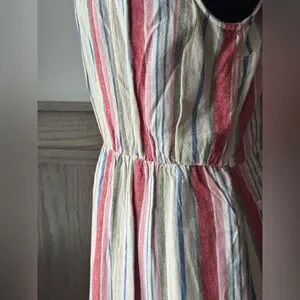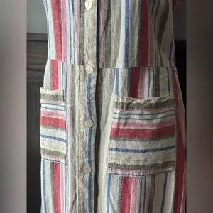 Vibrant fabric with blue, red, and green stripes. Soft texture. Ideal for crafting or sewing projects.