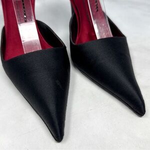 Giuseppe Zanotti Vicini Vintage Gothic Silk Pointed Toe Mule Pump Heels Black