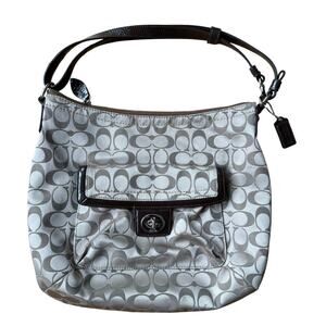 Coach Penelope Convertible Signature Sateen Brown Khaki Hobo Bag Purse F19232
