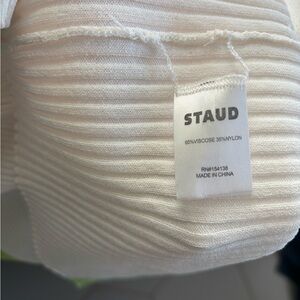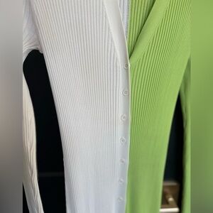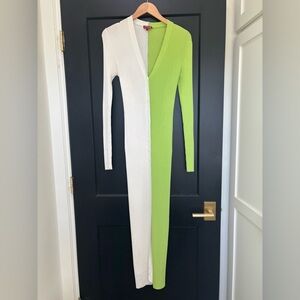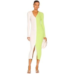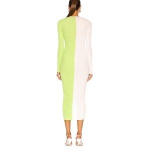 STAUD Shoko Colorblock Knit Dress Lime Green White Size Large Stretch Midi