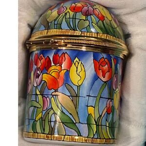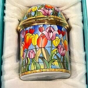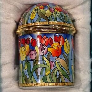 Tiffany & Co Halcyon Days Enamel Trinket Pill Box "Tiffany Tulips" w/box