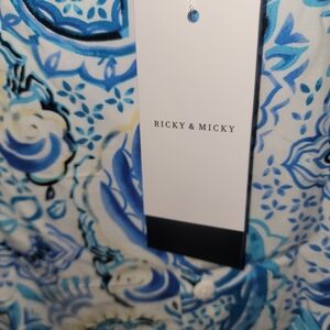 Mens sz M NWT Ricky and Micky paisley button up short sleeve shirt. So nice. Measures approx 20 across chest and 28 inches in length. Blue And White.