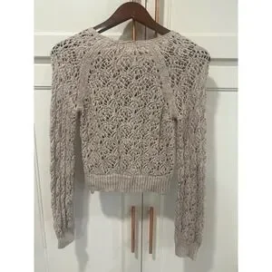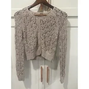 Free People Crochet Knit Cardigan Sweater Long Sleeve Neutral Boho Chic S