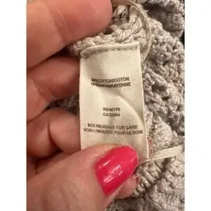 I can't find size tag but fits like a small. Whispers of bohemian elegance emanate from this Free People crochet knit cardigan. A captivating fusion of texture and comfort, this piece promises to elevate your style with its intricate open-knit design. The soft, neutral tone exudes a sense of effortless sophistication, allowing it to seamlessly integrate into any wardrobe. Delicate ribbing accents the hem and cuffs, creating a flattering silhouette that gently hugs your figure. The long sleeves provide warmth and coverage, making it a versatile layering piece for transitional weather. Embrace the romantic charm of this cardigan at a casual brunch with friends, a sunset stroll along the beach, or a cozy evening curled up with a book.