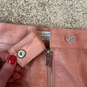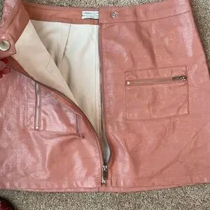 Chic mini skirt with front zipper. Features two zippered pockets. Perfect for casual outings.