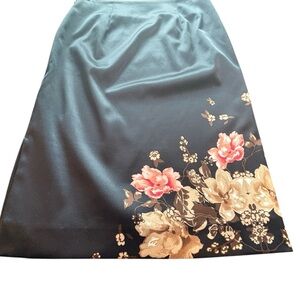 Le Château Y2K Vintage Black Floral Satin Pencil Skirt Side Slit 00