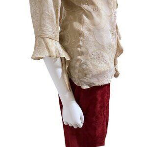 Y2K Silk Ruffled Babydoll Top S Flare Sleeves Beaded Neutral Fairy 100% Silk