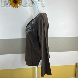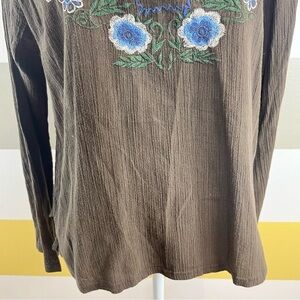 2/$25 Giselle Apparel Vintage 90s Brown Floral Embroidered Boho Hippie Blouse