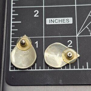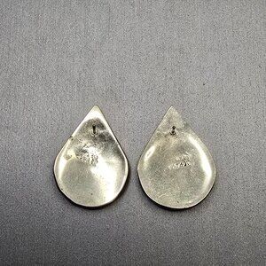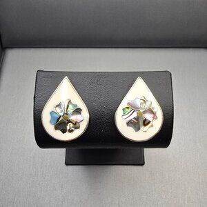 VTG Alpaca Silver Abalone Enamel Earrings 1" Mexico Teardrop Inlay Signed