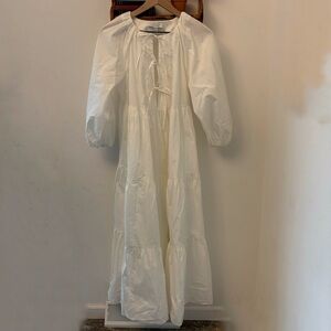 & Other Stories Los Angeles Atelier White Cotton Tie Maxi Dress Long Sleeve XS