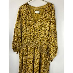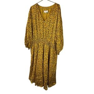 by Anthropologie Marigold Midi Dress Smocked V-Neck Gold Women's Plus Size 3X