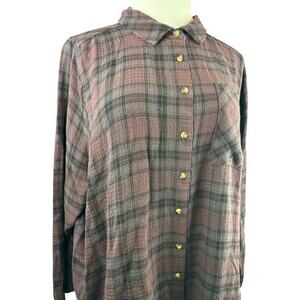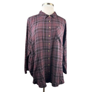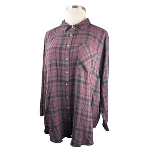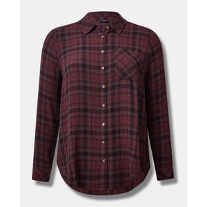 Torrid Lizzie Crinkle Flannel Gauze Button Up Tunic Red Plaid Plus Size 3 3X