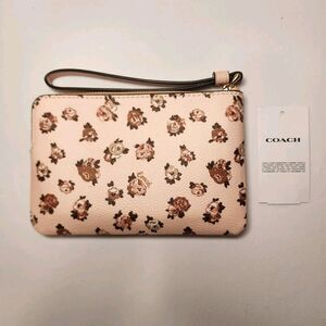 NWT COACH CZ442 Corner Zip Wristlet Clutch Bag Rosette Print Blush Pink Multi