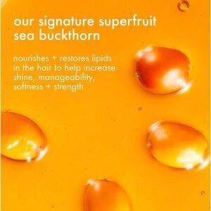 Sea Buckthorn: Known as one of earth's most potent, omega-rich plant sources, this superfruit berry nourishes strands, scalp, and skin while restoring lipids in the hair to help increase shine, manageability, softness, and strength