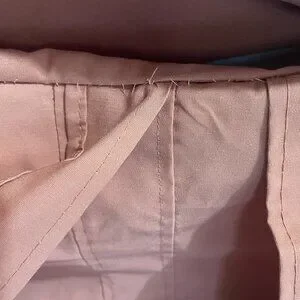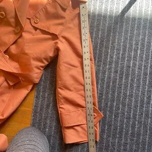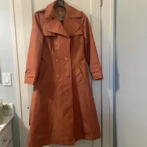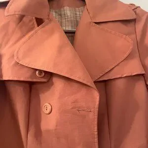 There have been professional repairs to the lining and belt area as pictured. The coat is a great spring overcoat in a fun color.